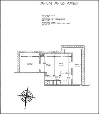 San Felice Circeo Latina Via dei Caprioli traversa via Mediana Vecchia piena proprietà do porzione di villino in trifamiliare, con corte annessa all'interno del Consorzio Colle del Circeo II, che dista circa 2 km dal mare e dal centro abitato . Disposto su due piani di circa mq.88 lordi complessivi, composto da sala, cameretta, bagno e cucina al piano terra; due camere e bagno al primo piano. Oltre due terrazze al primo piano per complessivi mq.29 lordi circa, annesso giardino di circa mq.380, in parte piantumato e in parte mattonato, con piccolo patio di circa mq.13.