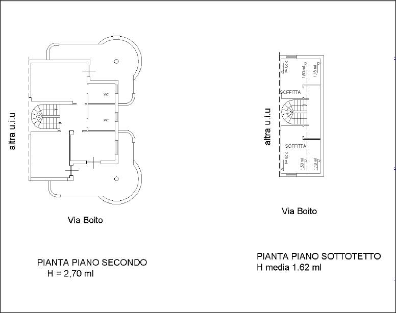 Percorrendo l’ultima rampa della scala interna si giunge nell’ambiente sottotetto costituito da un disimpegno che immette in due ambienti separati ed ai quali è possibile accedere a mezzo di porte interne.