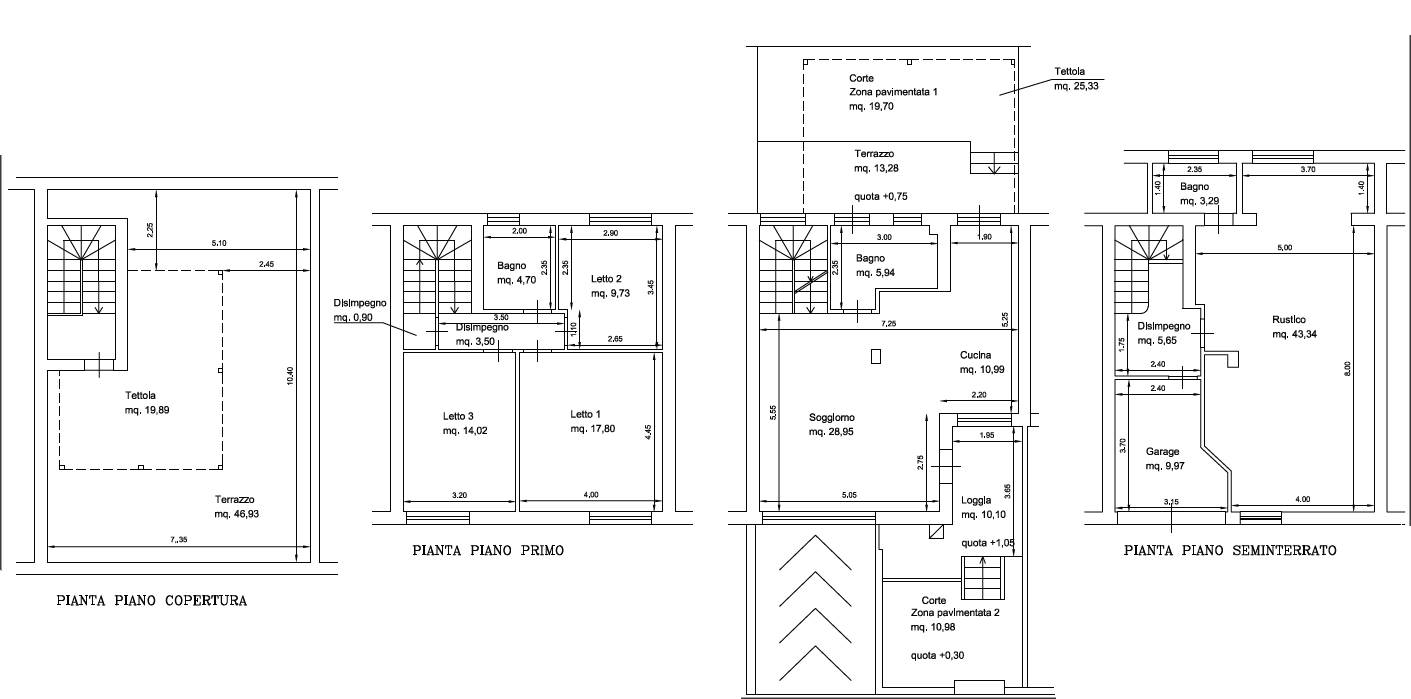 • Tipologia: Villino a schiera al piano S1, terra, primo e secondo.